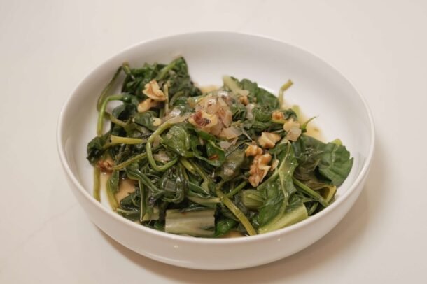 Fresh, leafy greens gently sautéed to create a light vibrant side dish.