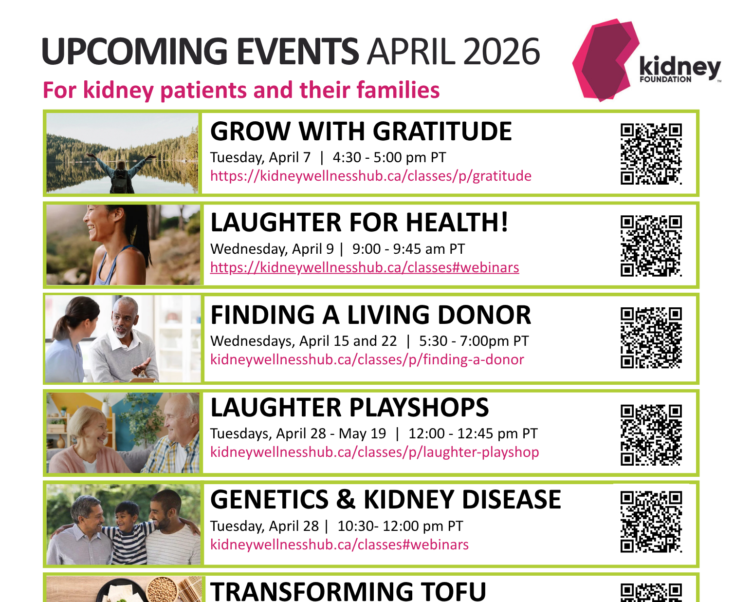 Kidney Foundation Upcoming Events & Individual Posters