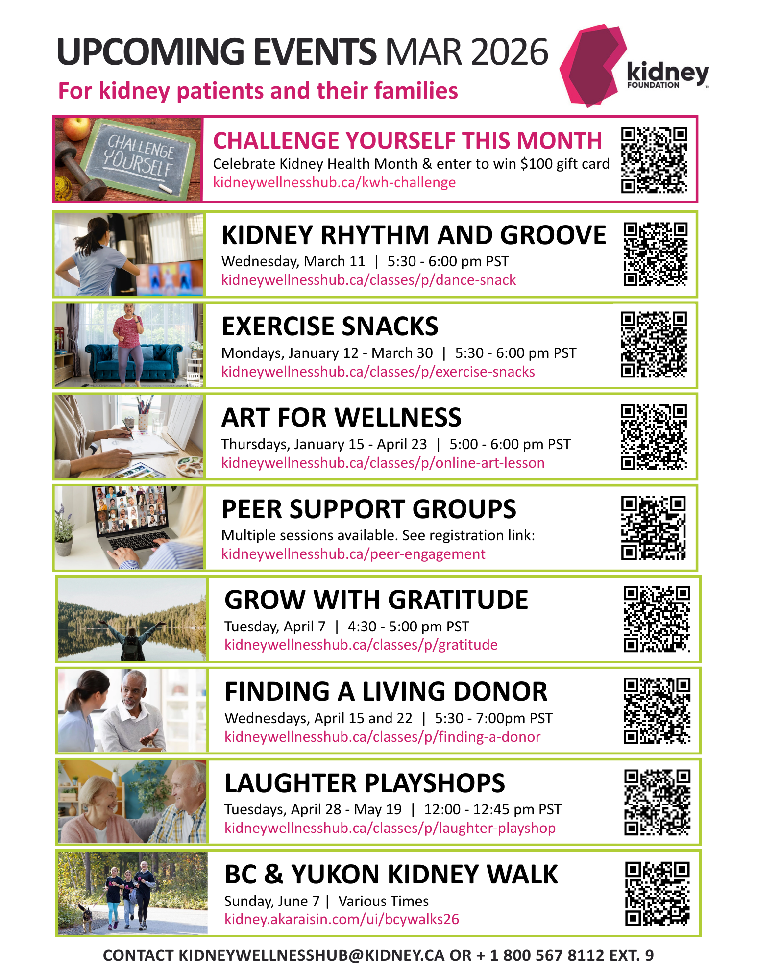 We’re celebrating Kidney Health Month with a special $100 wellness gift card of your choice, so be sure to download and share the posters and enter to win below. If you haven’t already joined the Kidney Wellness Hub and would like to receive our monthly updates directly, check the sign up for news and updates circle as well. Thank you for all you do to support the Kidney Community!